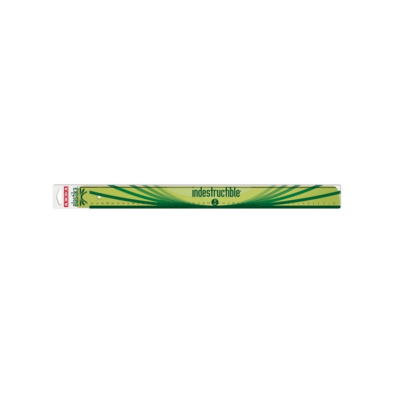 Linea elastika indistruttibile e precisa. Superficie lavorata a rilievo con particolari effetti brillanti e satinati. Millimetri e numeri incisi nella plastica. Cifre in grassetto ogni 5 millimetri per assicurare massima facilita' di lettura. Materiale innovativo che permette di piegarsi e di tornare sempre in forma.