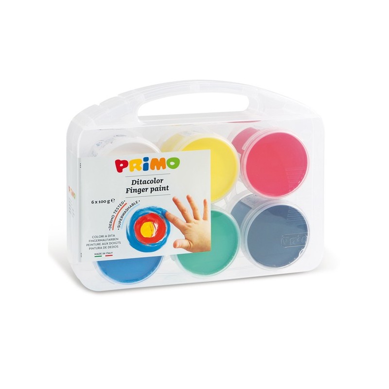 Ditacolor colori a dita - 100ml - c/pennello - Primo - valigetta 6 colori