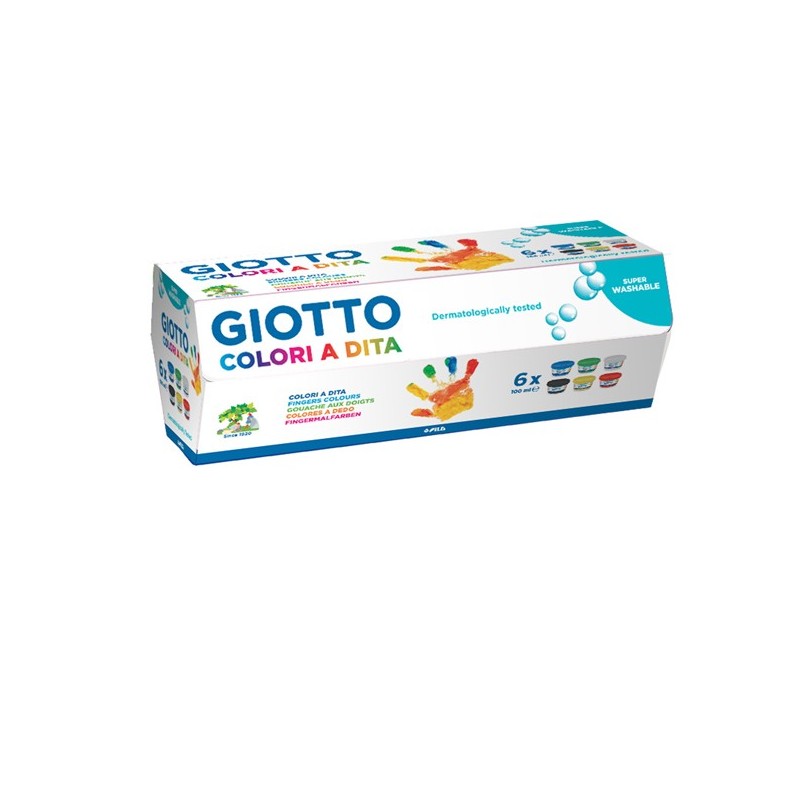 Tempera morbida da applicare con le dita. Confezioni da 6 colori: rosso, blu, verde, giallo, bianco, nero.