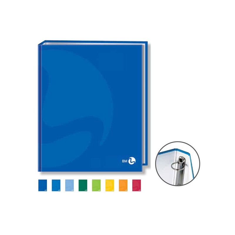 Raccoglitore formato 18,5x22cm da 1,8mm da 4 anelli tondi diametro 25mm. Plastificazione lucida. Assortimento 8 colori.
