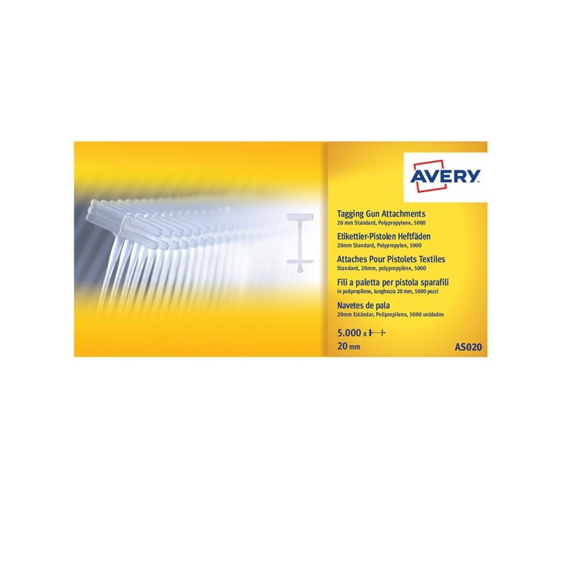 Confezione da 5000 fili a paletta per pistola standard. Fili trasparenti lunghi 20mm realizzati in polipropilene.
