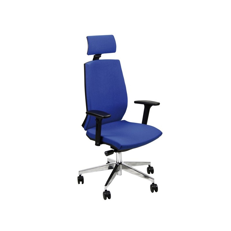 Poltrona semidirezionale girevole con elevazione a gas meccanismo synchro con 4 blocchi anti shock meccanismo a contatto permanente - schienale regolabile up-down - supporto lombare regolabile. Rivestimento in tessuto "PLUS - Bondai" 100% poliestere no flame e certificazioni di infiammabilità 1.IM UNI 9175. Completa di braccioli regolabili e poggiatesta. Alt.tot: 127-138cm; Prof.tot: 68cm; Alt.schienale: 57cm; Largh.schienale: 45cm; Largh.sedile:47cm; Prof.sedile: 47cm; Alt.sedile: 44-55cm.