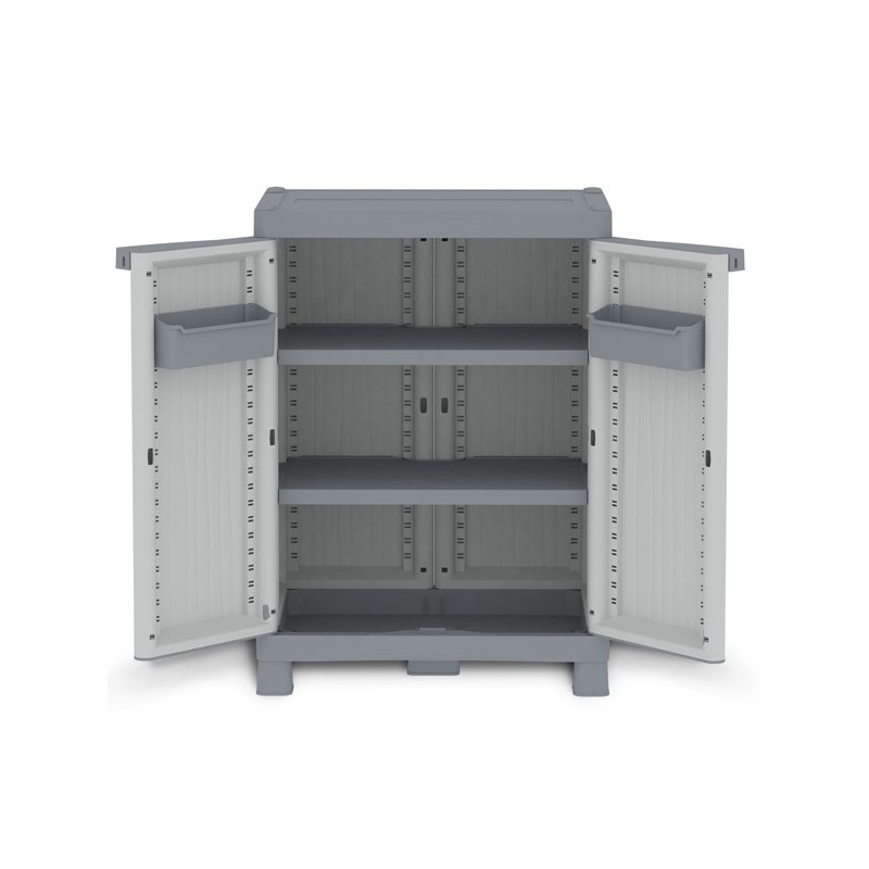 Armadio a 2 ante con 2 ripiani regolabili e 2 vaschette. Possibilità di chiusura con lucchetto ( non incluso). Dimensioni: 70x43,8x97,6 cm