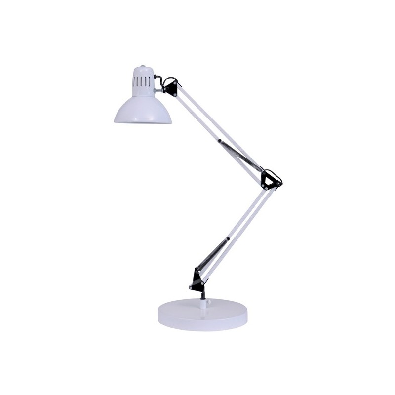 Realizzata in acciaio verniciato, fornita sia di base che di morsetto per la massima versatilità. Testa Ø 16,5cm, braccia 39cm+ 42cm. Base Ø 20cm. Attacco universale E27 compatibile con lampadine FLUO o LED (non fornite). Classe energetica: dipende dalla lampadina utilizzata.