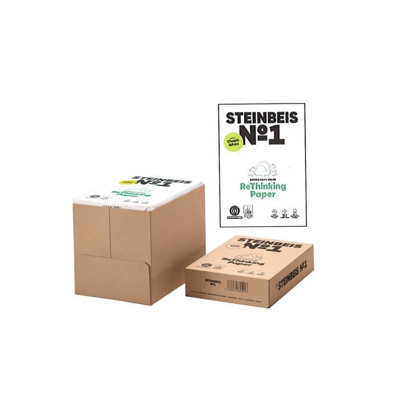 Carta riciclata post-consumer al 100%. Ha un un buon punto di bianco e pulizia di impasto in quanto per la produzione si utilizzano carte da macero selezionate provenienti da raccolte differenziate. Prodotta dalla cartiera Steinbeis è disponibile nei formati A4 e A3. Spessore my 102, opacità 95%, bianco 70% Carta certificata Blue Angel.