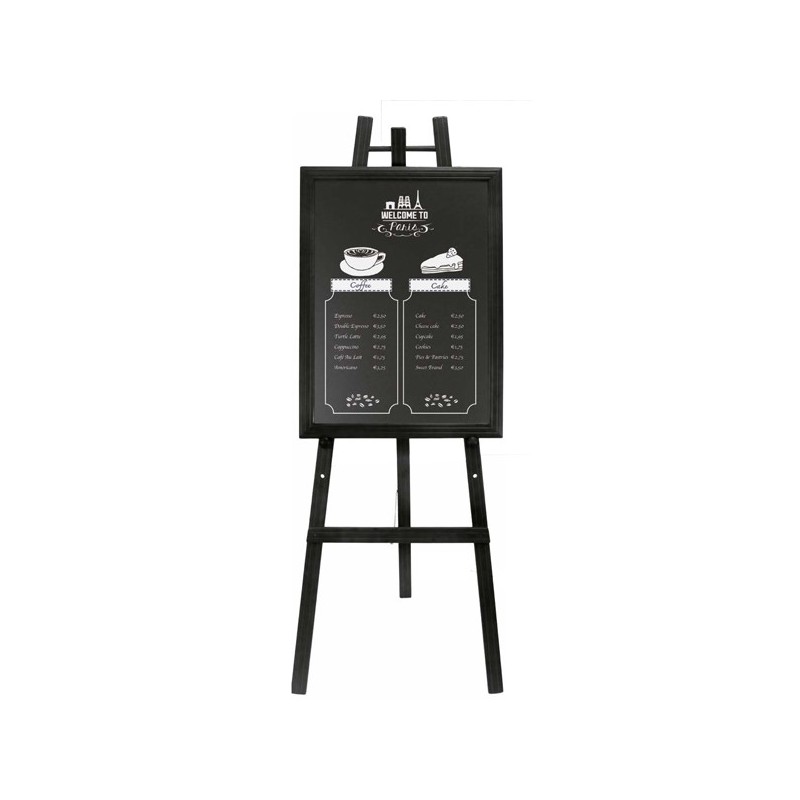Cavalletti realizzati in legno duro ed adatti anche per uso esterno. ideali come appoggio per le lavagne nere o a led, da collocare in ingressi di locali o in ambienti aperti. pratici, robusti ed eleganti! Compatibile con la lavagna 71643.