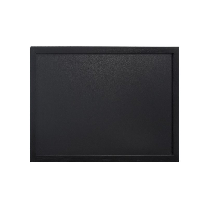Lavagna di qualità con cornice in legno laccato nero L2cm H1cm. Fondo lavagna nera in resina melaminica da 4mm. Adatta per uso interno e esterno.Superficie di scrittura doppia, non porosa, antigraffio, antiuro e resistente ai raggio UV. Fornita con kit di mo ntaggio a parete e 1 pennarello a gesso liquido bianco.