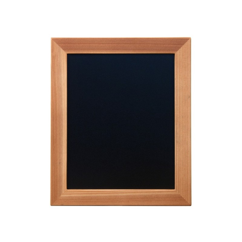 Lavagna di qualità con cornice in legno teak L2cm H1cm. Fondo lavagna nera in resina melaminica da 4mm. Adatta per uso interno e esterno.Superficie di scrittura doppia, non porosa, antigraffio, antiuro e resistente ai raggio UV. Fornita con kit di mo ntaggio a parete e 1 pennarello a gesso liquido bianco.