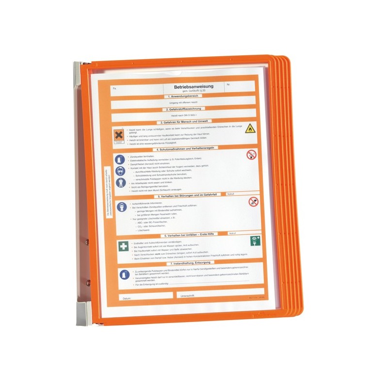 Leggio da parete ideale in ambienti in cui è richiesto un prodotto resistente (es. ufficio posta, magazzino, aree produttive e attività commerciali come porta licenze). Composto da un supporto da muro in acciaio rivestito in plastica e 5 pannelli espositivi in ppl sherpa A4 monocolore e cavalierini personalizzabili e removibili.