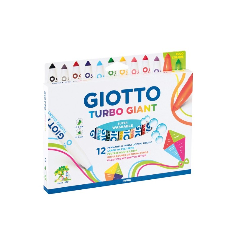 Il pennarello extra large di ultima generazione con punta conica che permette di realizzare ampie campiture di colore, ma anche di tracciare linee fini se utilizzato in posizione verticale.Tinte fluo e colori classici. Inchiostro base acqua superlavabile dalla pelle con sapone e acqua tiepida. Cappuccio ventilato, punta di lunga durata diametro 7,5mm.