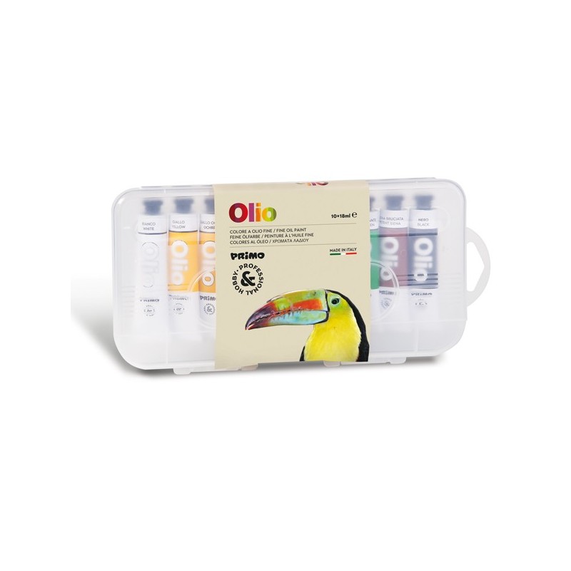 Astuccio in polipropilene trasparente con 10 tubetti in alluminio da 18ml di colore a olio fine