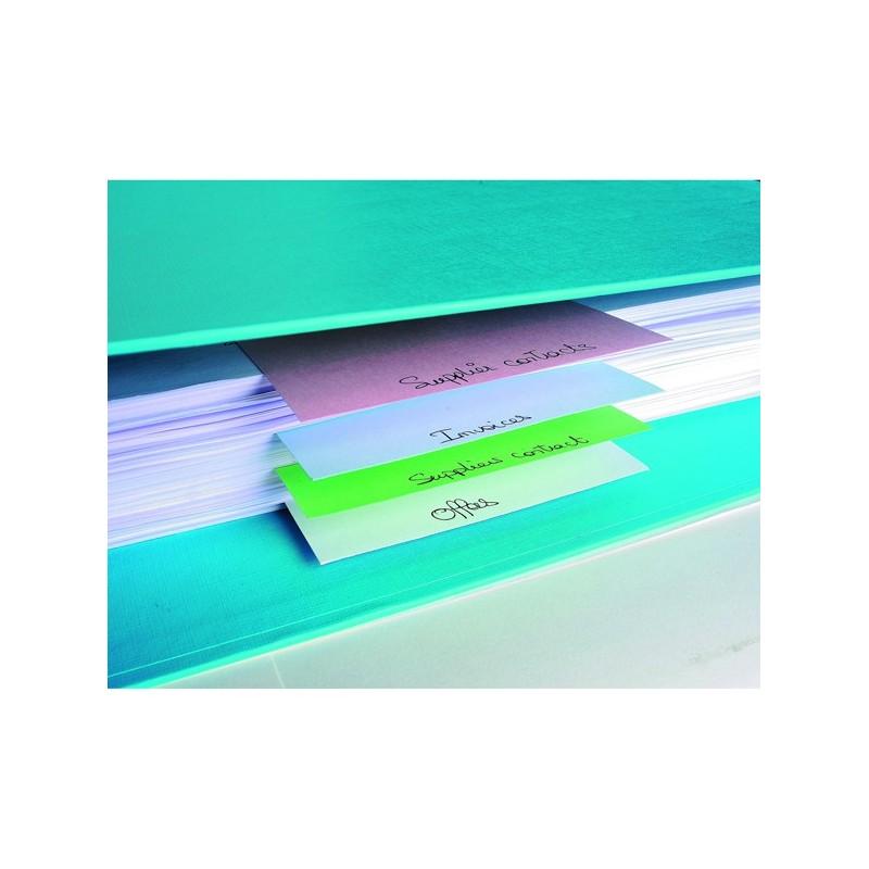 Divisori orizzontali in cartoncino riciclato (certificazione Blue Angel) da 180 gr. Dotati di 2 fori e forniti in 4 colori assortiti. Formato: 10,5x24 cm.