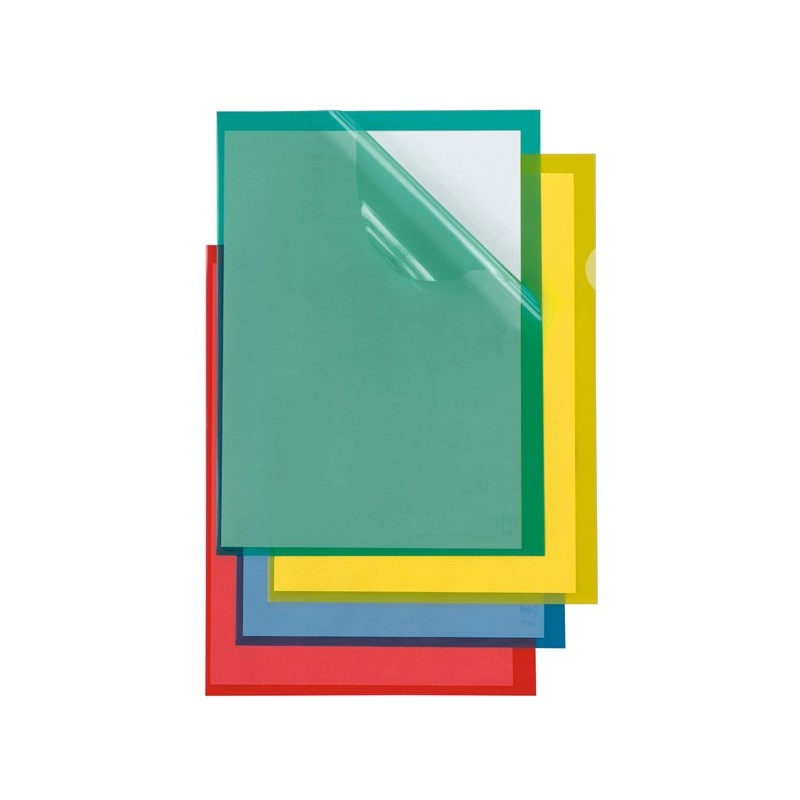 Cartelline in PP trasparente giallo, alto spessore, con apertura a L e lunetta laterale per facilitare l'inserimento o l'estrazione. Ideali per archiviare fax, fotocopie e documenti di facile consultazione. Formato interno 210x297mm. Formato esterno 232x322mm. Confezione da 25 cartelline.