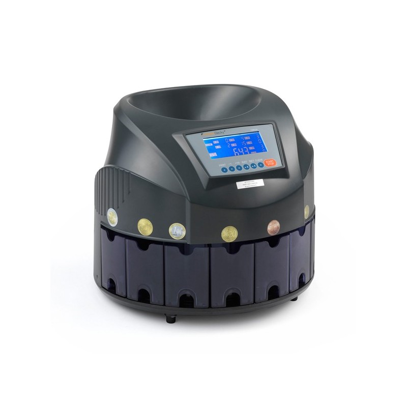 Conta-divide monete Euro in 8 cassetti,silenziosa e veloce, con display LCD di ultima generazione. Dotata di funzione batch memorizzabile e dell'innovativa funzione REPORT di conteggio a display. Permette di effettuare la stampa del report tramite stampante dedicata (cod.87185). Capacità di carico 300/500 monete. Capacità dei cassetti 180/230 monete. Velocità di conta 215 monete/minuto. Display digitale LCD (retroilluminato blu). Alimentazione AC 220V 50Hz. Dimensioni mm. 321 (D) x 270 (H). Peso kg. 4,50