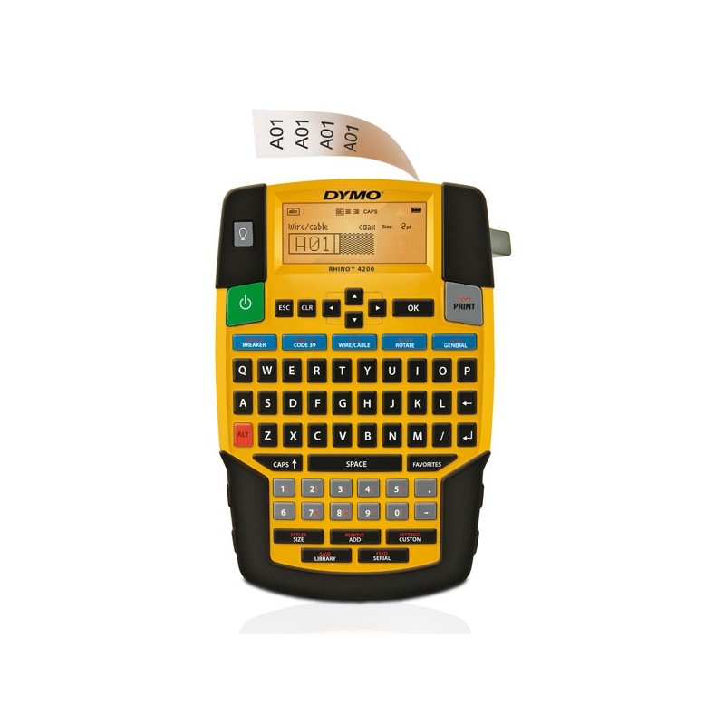 Etichettatrice compatta con funzioni di risparmio tempo per i professionisti in movimento • Tastiera stile computer per una facile e rapida immissione del testo • Tasti di accesso rapido One-Touch per creare e formattare etichette per avvolgimenti di fili/cavi, etichette a bandiera, codici a barre 39 e 128, etichette di lunghezza predefinita, etichette generali e per interruttori • Stampa su nastri rhino 6-9-12-19mm. Trasferimento termico. 4 righe di stampa. 7 dimensioni di stampa. • “Tasto "Preferiti" per accedere con una singola selezione alle etichette, ai simboli e ai termini più utilizzati • Tasto "Personalizza" per evitare inutili ripetizioni: consente di personalizzare e salvare le impostazioni per singoli formati etichetta • Libreria preprogrammata con 150 simboli e termini utilizzati per i settori sicurezza, elettrico, A/V professionale e gestione impianti • Il paraurti in gomma integrato protegge il dispositivo in caso di caduta • Ampio display retroilluminato facile da leggere anche in siti con scarsa luminosità • Taglierina manuale. Batteria ricaricabile a ioni di litio. Oltre 50 simboli industriali programmati. Codici a barre: code 39-code 128. Memoria di 25 etichette. Dimensioni 127x181 h 62mm. Include: • Etichettatrice Rhino 4200 • Cartuccia etichette nero su bianco in vinile da 12 mm • Guida di consultazione rapida