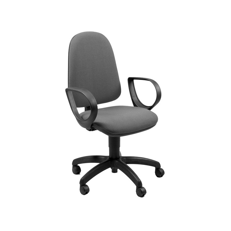 Sedia operativa girevole con base in nylon nero Ø 60cm. Struttura in acciaio nero e ruote in nylon Ø5cm. Imbottitura del sedile e dello schienale in spugna e PPL, rivestimento in acrilico. Braccioli inclusi. Elevazione a gas. Meccanismo a contatto permanente. Schienale regolabile in altezza e profondità. Altezza totale da 98 a 110cm.