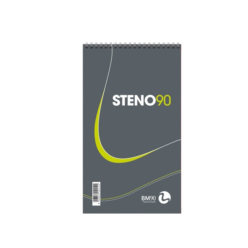 Blocco con spirale in metallo sul lato corto. Carta da 90gr in pura cellulosa. 60fg con rigatura stenografia. Copertina da 300gr. Verniciatura UV. Formato 13x22,5mm.