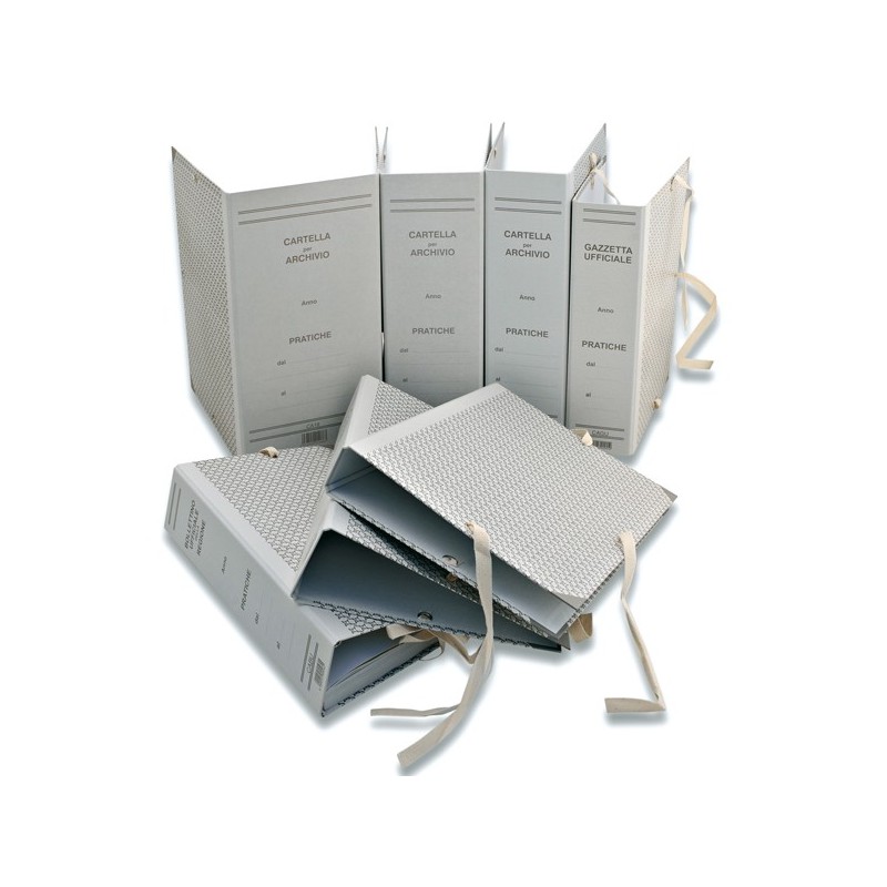 Cartone accoppiato 1,8 mm. Rivestito esternamente in carta stampata ad 1 colore gr. 100/115 mq. Risguarda interna in carta bianca. Lacci in tela: larghezza 15 mm. lunghezza 260 mm. saldamente fissati tramite occhiello metallico alla struttura su tre lati. Lacci ripassati all’esterno per immediato e corretto utilizzo. Formato utile H35xL25cm. IDEALI PER: Archiviazione, consultazione di ogni genere di documenti in ulteriori cartelline. Ufficio - Studio Professionale - Studio Legale - Pubblica Amministrazione.