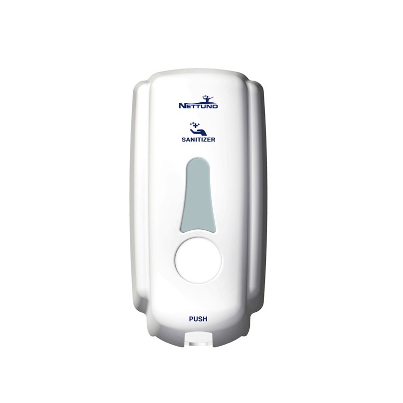 Dispenser da muro ad erogazione spray, ricaricabile con ricariche T-S800. Dimensioni: 118 (L) x 130 (P) x 260 (H) mm.
