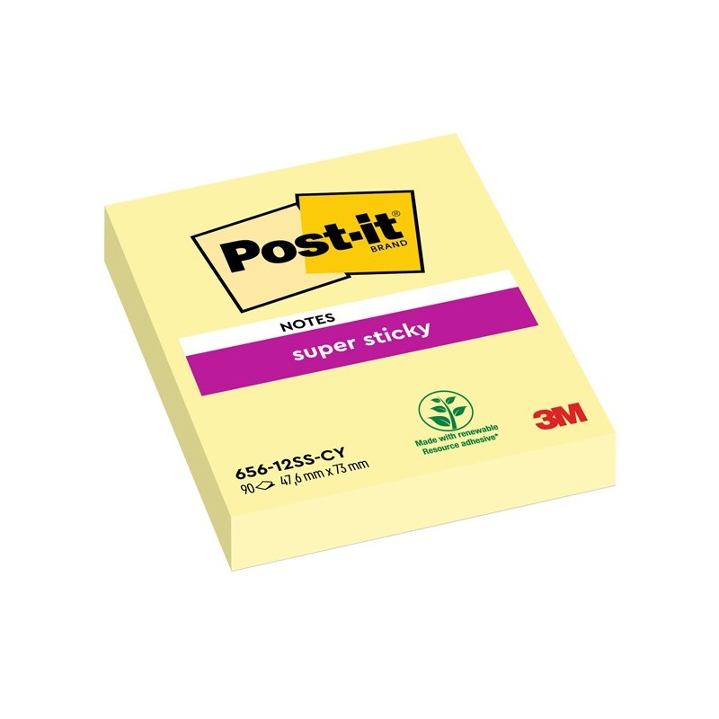 Blocco foglietti Super Sticky - 656-12SS-CY-EU - 47,6 x 76 mm - giallo Canary - 90 fogli - Post-it