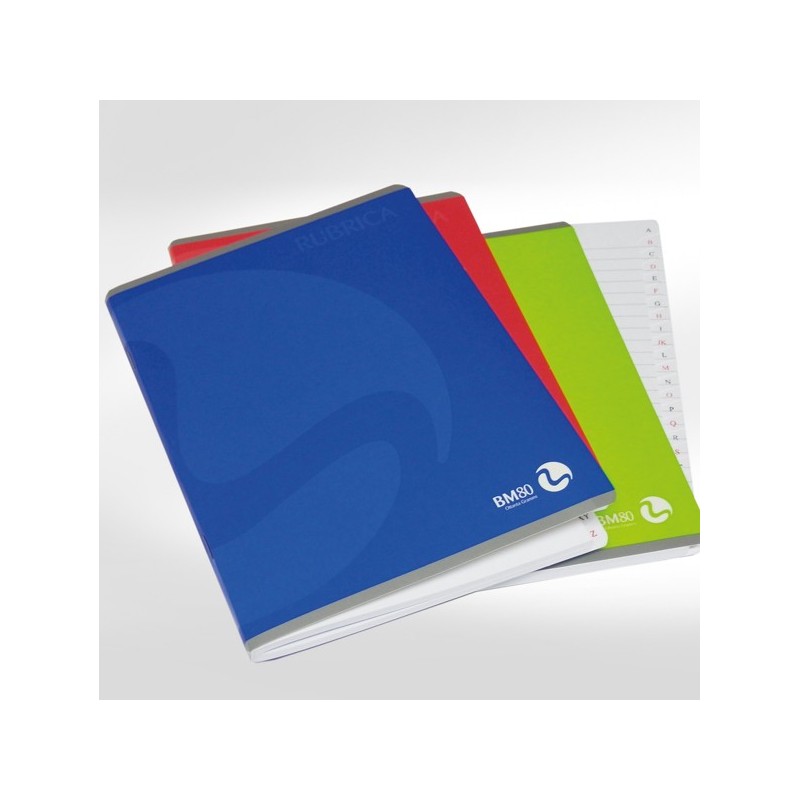 Rubrica in carta in pura cellulosa da 80gr. Rilegatura a punto metallico, 1 rigo. Copertina patinata lucida da 250gr. Plastificazione opaca e verniciatura serigrafica lucida. Assortimento in 8 colori. Formato A5- 15x28. 60 fogli.