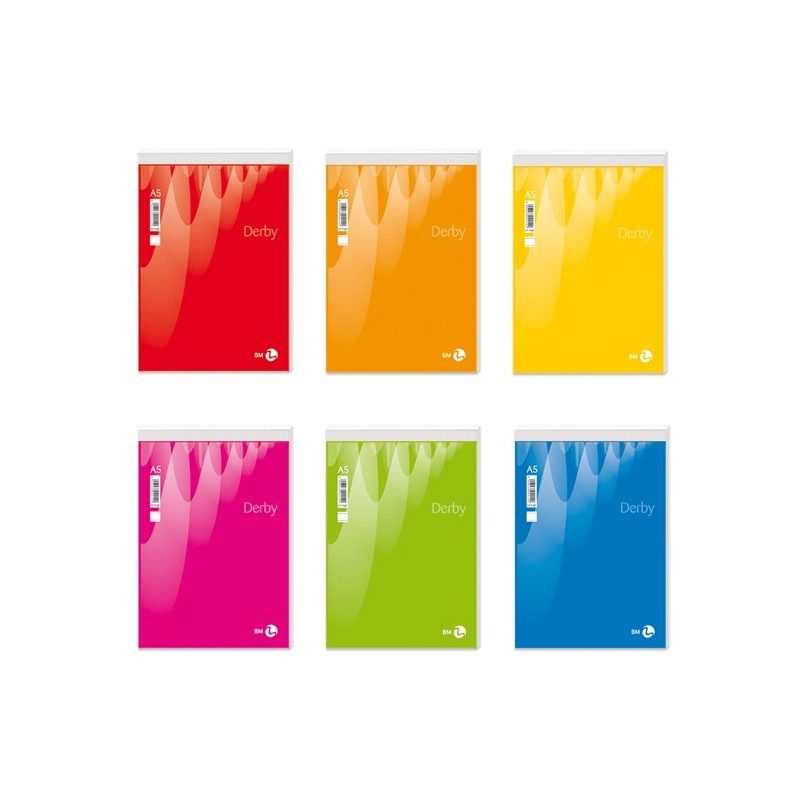 Blocco note realizzato in carta usomano in carta bianca ideale per l'ufficio e la scuola. Rilegatura a punto metallico. Copertina da 150 gr assortita in 6 colori. Formato A5-15x21cm. Rigatura 1 rigo. 70 fogli da 60gr.