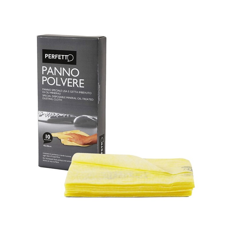 confezione 10 panni gialli usa e getta antistatici per la polvere cm. 45x30 impregnati di olio minerale altamente assorbenti. Adatti per mobili e superfici