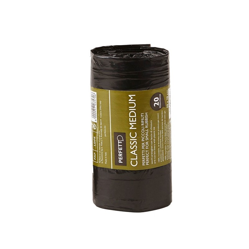 Sacchi in materiale rigenerato e riciclato 99% Norma Uni 1066702, Masterbatch 1%. Formato 55x70cm - 45Lt (10µ). Colore nero.