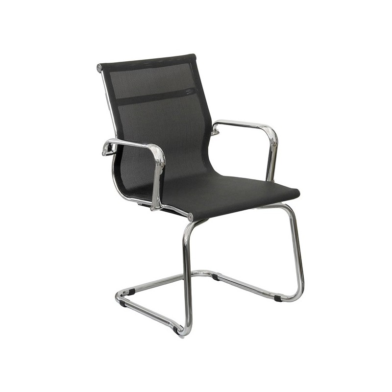 Seduta visitatore in acciaio cromato. Rivestimento in rete portante di colore nero. Poltrona con schienale basso con supporto lombare. Braccioli inclusi (non rimovibili). Alt. tot: 98cm; Profondità tot: 55cm; Alt. schienale: 53cm; Larghezza schienale: 46cm; Larghezza sedile: 48cm; Profondità sedile: 45cm.