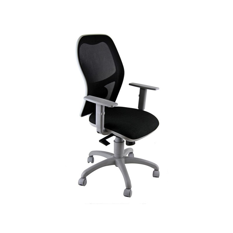 Seduta operativa girevole - elevazione a gas - meccanismo Syncro - 4 blocchi anti shock - meccanismo a contatto permanente - schienale con supporto lombare regolabile. Completa di braccioli regolabili. Rivestimento in tessuto "ECO-Eco" 100% polipropilene. Alt.tot: 102-113cm; Prof.tot: 68cm; Alt. schienale: 60cm; Largh.schienale: 48cm; Largh. sedile: 51cm; Prof. sedile: 46cm; Alt.sedile: 42-54cm.