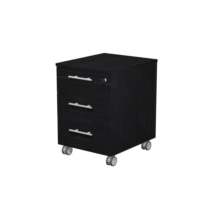 Cassettiera tre cassetti. Cassetti con maniglie in metallo. Guide metalliche con fermo a fine corsa. Completa di serratura sul primo cassetto e ruote pivotanti. Fornita montata. Dimensione:L41,8 x P52 x H61,5cm.