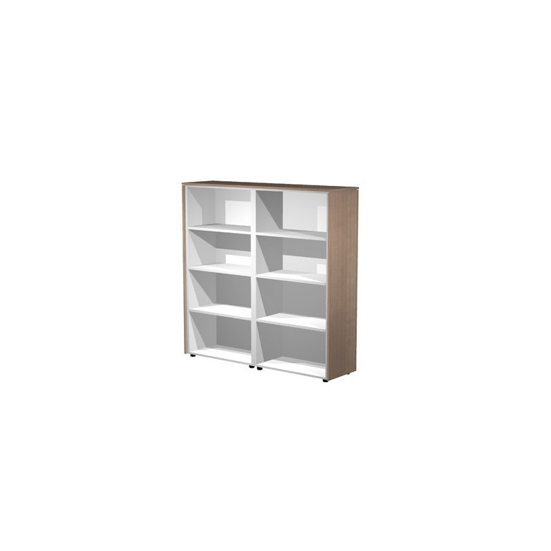 Struttura colore grigio alluminio. Top e fianchi finitura (sp. 14 mm) colore nero venato frassino e ciliegio arabis. Top, base e fianchi sp. 18 mm. Ripiani regolabili in altezza sp. 25 mm. Schiena sp. 10 mm. Piedini livellabili dall’interno. Disponibili moduli singoli e doppi con top finitura unico. I mobili possono essere allestiti a giorno o completi di ante con serratura. COPPIA Mobili medio-alti a giorno, 6 ripiani spostabili. L162,8 x P43 x H158,2cm.