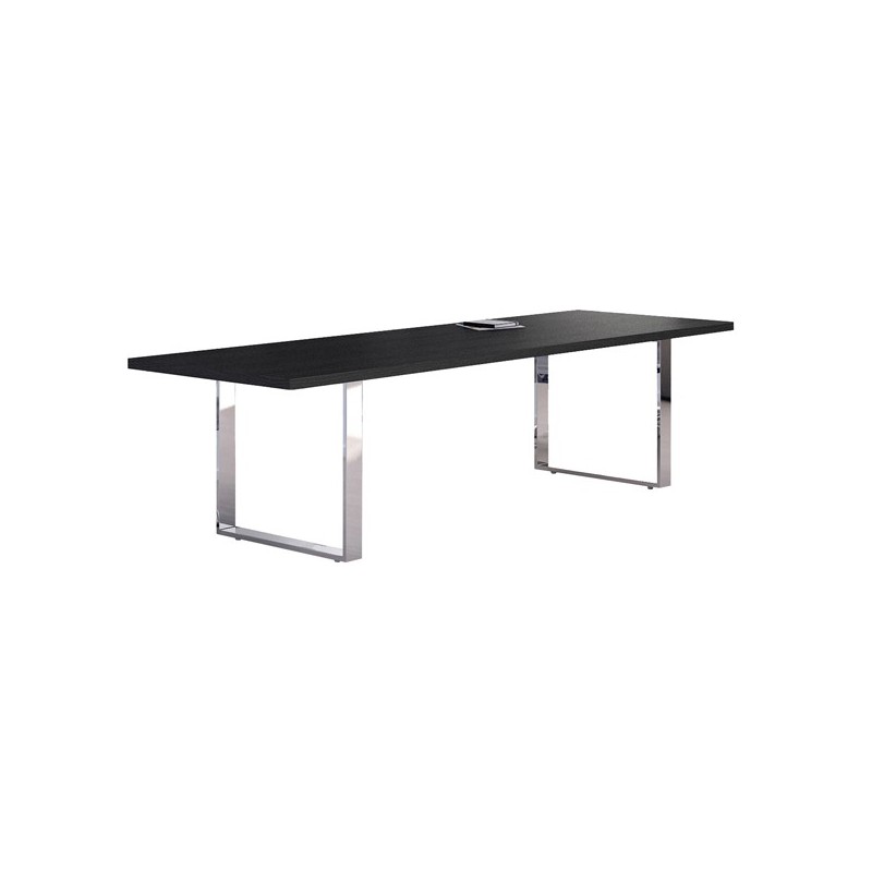 Tavolo rettangolare con piano sp. 38 mm e bordo antiurto in ABS. Piedini regolabili in altezza. Tavolo con fianchi in metallo cromato 70x20mm. Dimensioni: L220 x P100 x H74cm