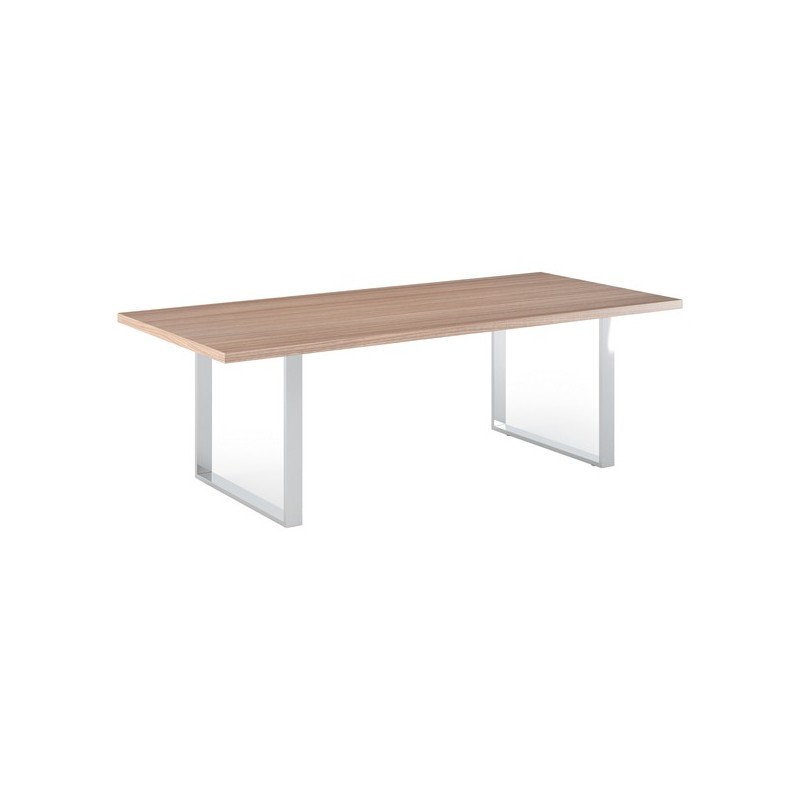 Tavolo rettangolare con piano sp. 38 mm e bordo antiurto in ABS. Piedini regolabili in altezza. Tavolo con fianchi in metallo cromato 70x20mm. Dimensioni: L220 x P100 x H74cm