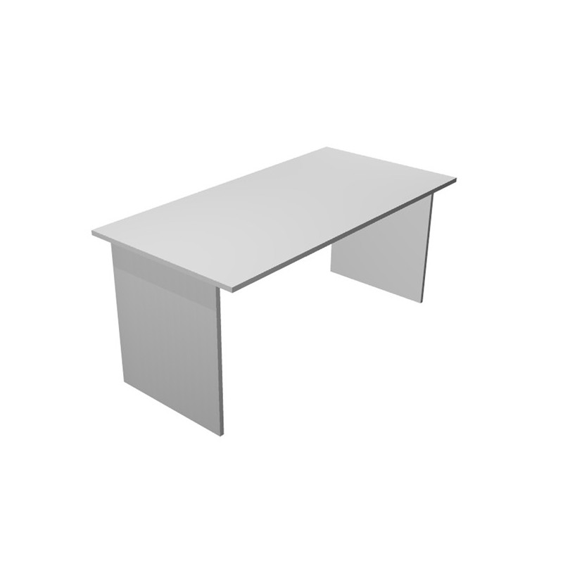 Scrivanie con dimensioni conformi alle normative sulla sicurezza dei posti di lavoro in ufficio. Bordatura dei piani in ABS 2mm antishock ed assenza di spigoli vivi. Le scrivanie sono disponibili nella versione con fianchi pannello in melaminico (sp. 22 mm) o con fianchi in metallo ad L verniciati effetto cromo completi di piedini regolabili in altezza e canalina passacavi ispezionabile. Scrivania operativa con fianchi legno, dimensioni: L160 x P80 x H72cm