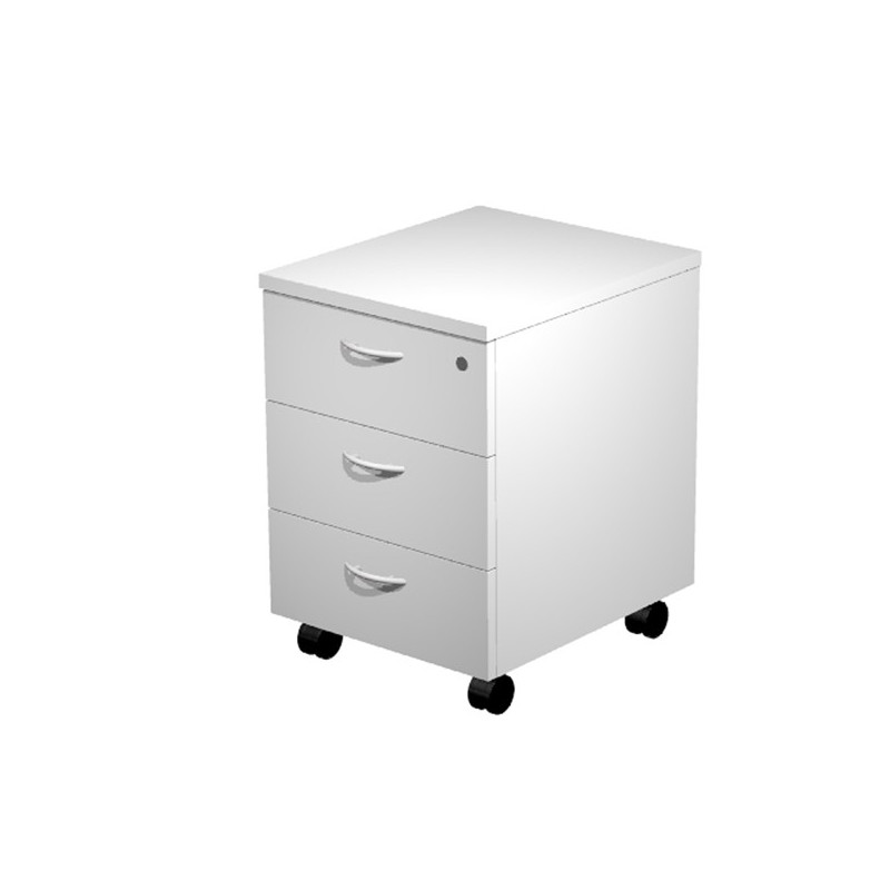 Cassettiera 3 cassetti, il primo con serratura; con 4 ruote pivotanti. Fornita montata. Dimensioni: L43 x P52 x H59,5cm