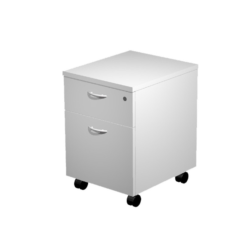 Cassettiera 1 cassetto con serratura + 1 classificatore per cartelle sospese con interasse 33 cm. Dotata di ruote pivotanti e meccanismo anti-ribaltamento. Fornita smontata. Dimensioni: L41,8 x P52 x H59,5cm