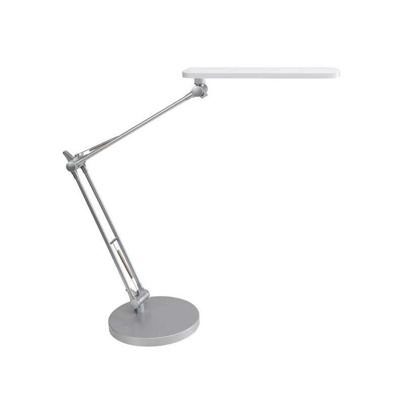 Lampada da tavolo a led 6w completamente orientabile grazie agli snodi fra bracci, testa e base. Illuminazione ampia grazie alla testa da 28cm.Lampadina da 6W (compresa, non sostituibile) luce calda 3000K. Classe energetica: G