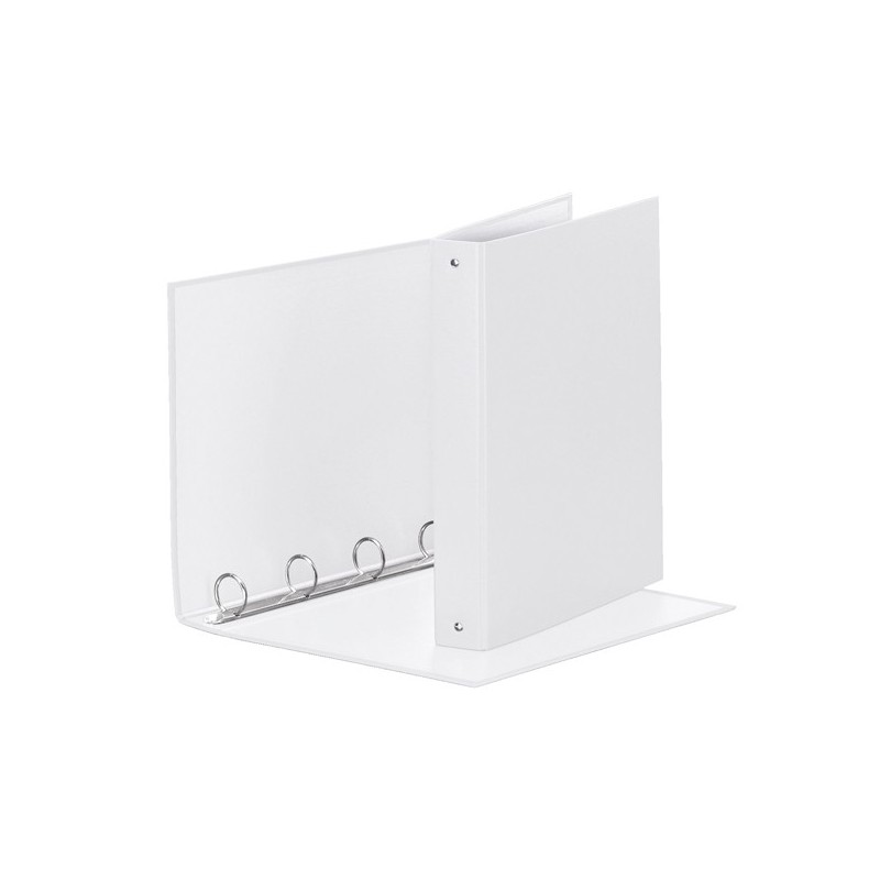 Raccoglitore in robusto cartone da 2 mm di spessore rivestito in polipropilene (bianco internamente). Solidità e affidabilità dei materiali rendono il prodotto ideale per un uso intensivo domestico o in ufficio, mentre il rivestimento fornisce eleganza e gradevolezza al tatto. Meccanismo a 4 anelli tondi (diametro 30 mm). Formato utile 22x30 cm. Dimensioni esterne 27,5x31,5x4,5 cm. Capacità 200 fogli (da 80 gr/mq). Colore bianco.