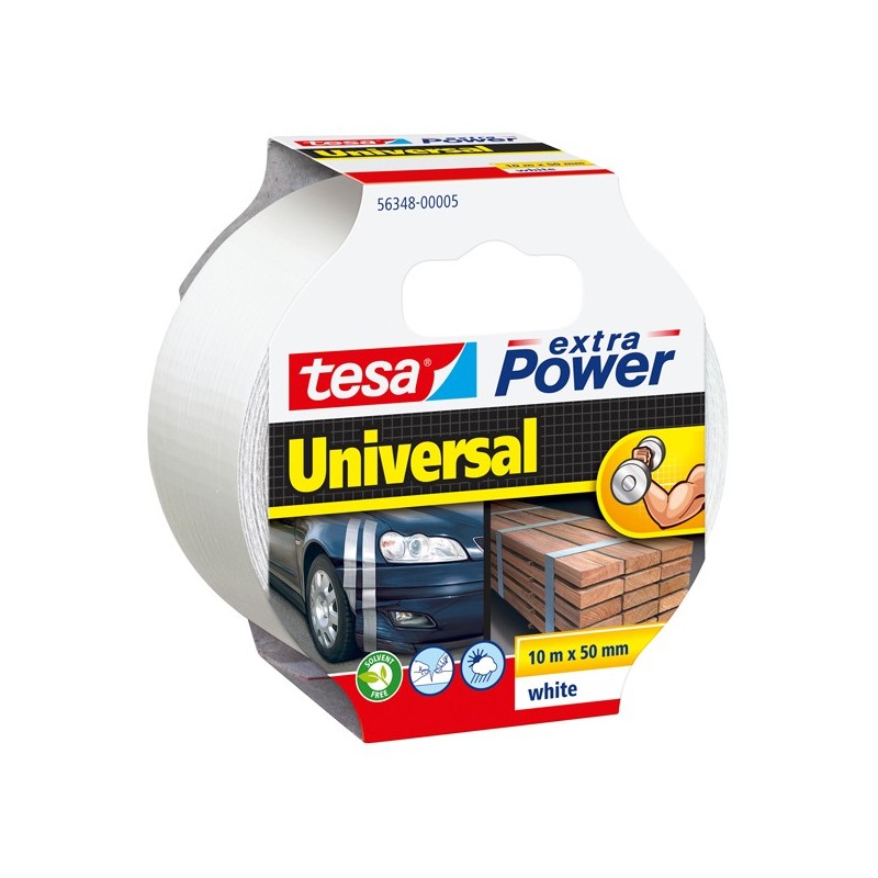 Tesa extra Power® Universale è un nastro telato con grande potere adesivo. Chiamato anche nastro americano, è ideale per lavori manuali, riparazioni, fissaggio, imballaggio, marcatura e altro. Questo nastro telato spicca per la sua forza ma allo stesso tempo può essere strappato a mano e dunque è sempre pronto per riparazioni veloci. Ha buona adesione a tutti i tipi di superfici, è resistente agli agenti atmosferici si presta quindi ad applicazioni in interni ed esterni. E' privo di solventi.