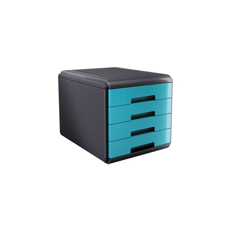Cassettiera Mydesk - 29,5 x 38,5 x 28,2 cm - 4 cassetti da 4,5 cm - grigio/turchese - Arda