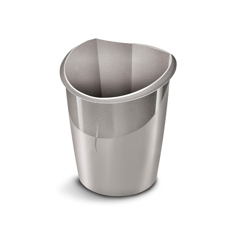 Cestino dal design raffinato con finitura opaca e lucida a contrasto. Forma a mezza luna per ridurre la superficie. Design curvo che consente di gettare facilmente le carte. Ampio bordo a maniglia per una facile maneggevolezza.