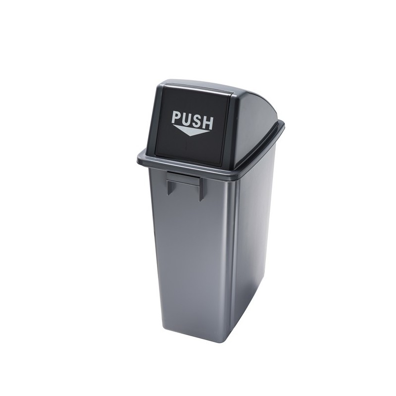 Contenitore in polipropilene ad alta densità da 60Lt con maniglie integrate. Design compatto per un facile collocamento anche in spazi limitati. Forniti con coperchio nero PUSH ad apertura frontale. Dimensioni: L 33 x P 46cm - H 79cm. Pulizia periodica da effettuare con un panno morbido e non abrasivo, imbevuto d’acqua. Detergenti che contengono solventi possono danneggiare il materiale.