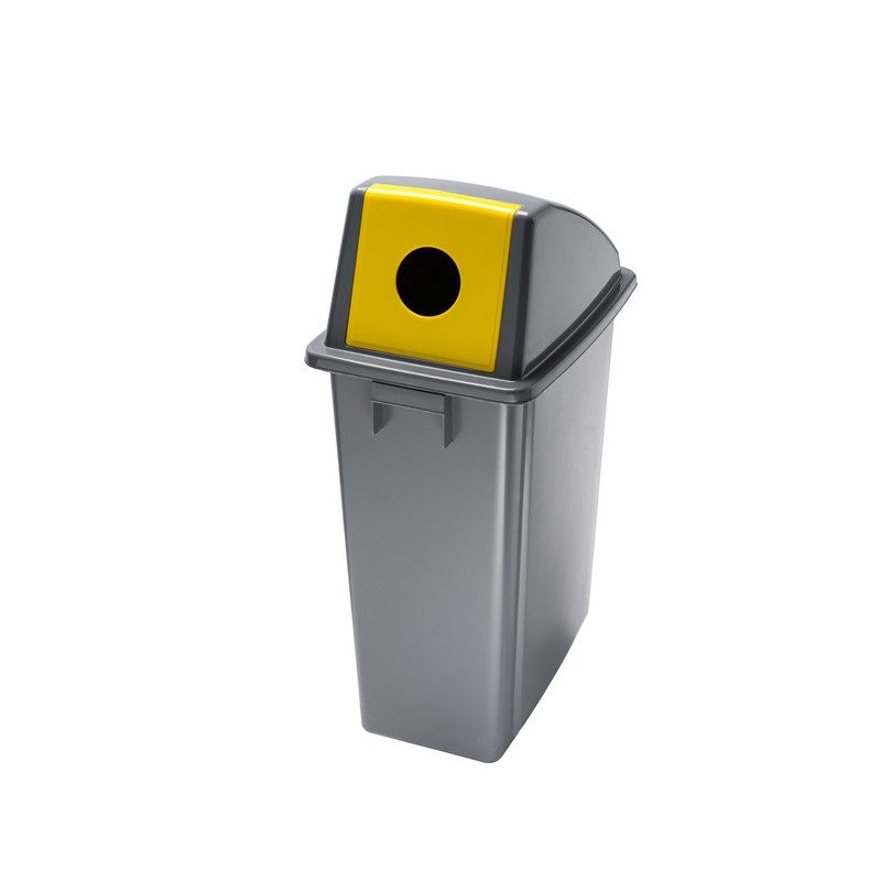 Contenitore in polipropilene ad alta densità da 60Lt con maniglie integrate. Design compatto per un facile collocamento anche in spazi limitati. Forniti con coperchio giallo con foro per le bottiglie. Dimensioni: L 33 x P 46cm - H 79cm. Pulizia periodica da effettuare con un panno morbido e non abrasivo, imbevuto d’acqua. Detergenti che contengono solventi possono danneggiare il materiale.