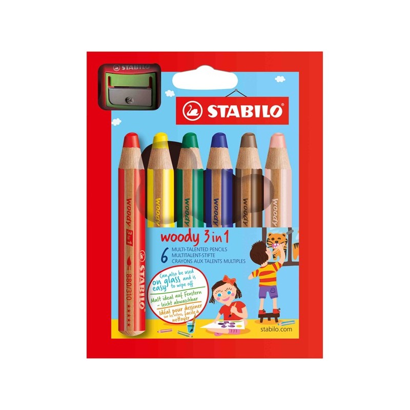 Astuccio in cartone contenente temperamatite + 6 matite colorate, pastello a cera, acquarello tutti in uno. Tratto morbido e pastoso. Utilizzabile su quasi tutte le superfici. Intensa luminosità anche su carte scure. Mina XXL da 10mm.