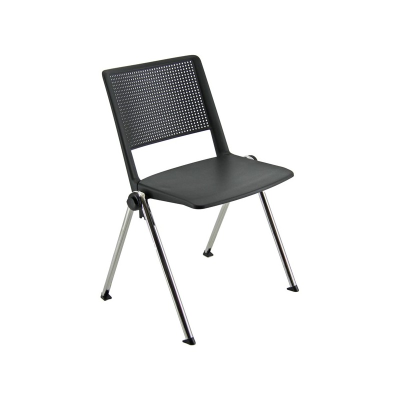 Seduta comunità 100% polipropilene con 4 gambe in acciaio cromato. Senza braccioli. Alt.tot: 80cm; Prof.tot: 54cm; Alt.schienale: 37cm; Largh.schienale: 44cm; Largh.sedile: 45cm; Prof.sedile: 41cm; Alt.sedile: 45cm.