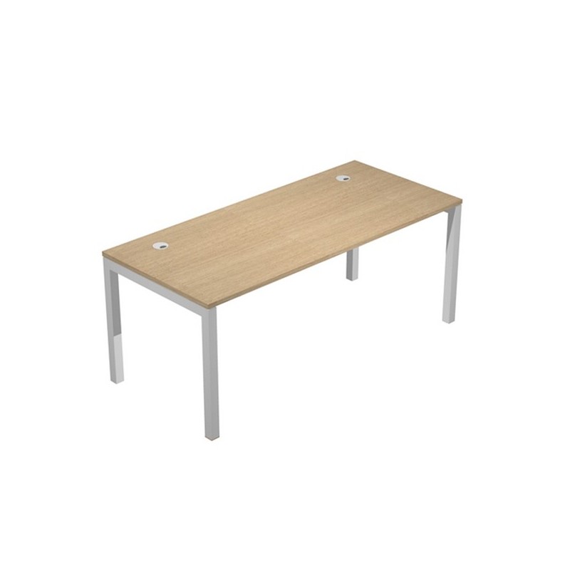 Scrivania per postazione singola dimensioni: L180 x P80 x H74,6cm. Le scrivanie per postazione singola o multipla, sono in bilaminato nobilitato melaminico conforme alle norme UNI e EN classe E1, antigraffio ed antiriflesso, hanno sp. 25 mm con bordo sp. 2 mm in ABS resistente agli urti. Sono caratterizzate da robuste gambe a ponte in metallo a sezione quadrata (50 x 50 mm) verniciate a polveri epossidiche nel colore grigio alluminio, complete di piedini regolabili in altezza.