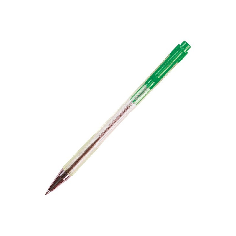 Penna a sfera a scatto con puntale in metallo. Fusto trasparente con scanalature antiscivolo. Sfera in carburo di tungsteno. Inchiostro a base d'olio. Punta 0,7mm. Colore: verde.