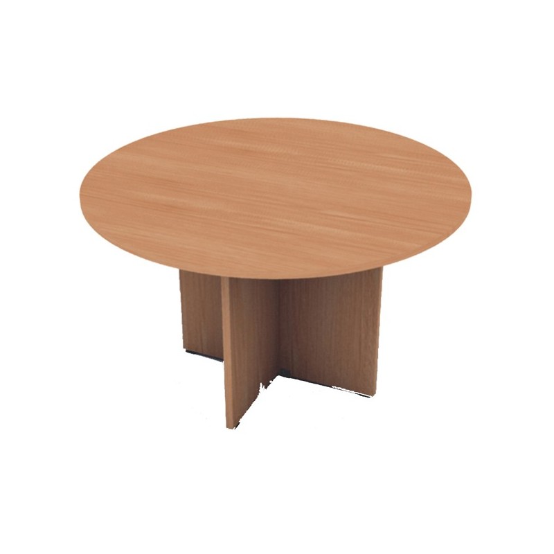 TAVOLO RIUNIONE tondo da 4 POSTI Ø120 x H72cm. Realizzato in melaminico spessore 22 mm, certificato classe E1. Piani bordati con profili antiurto sagomato, gambe in melaminico sp. 22 mm e piedini regolabili per la massima stabilità.