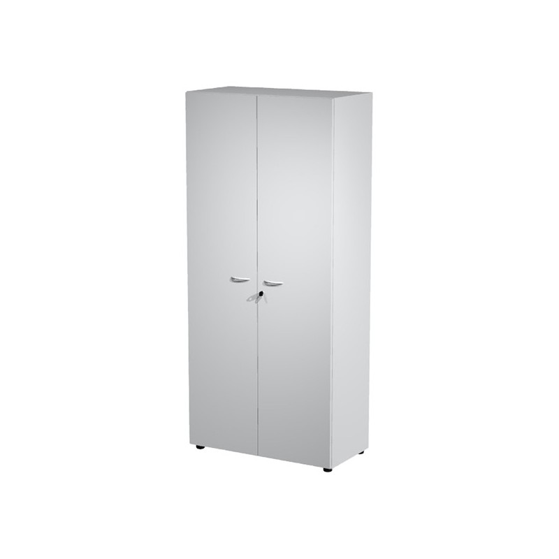 Armadio a 2 ante battenti alte con serratura. 3 ripiani spostabili + 1 fisso. Dimenzioni: L90 x P45,8 x H200 cm. Linea di armadi componibile particolarmente robusti e stabili, costituiti da struttura alta 200cm e completabili con sopralzo alto 40cm. Grande profondità di 46cm e larghezza di 90 cm. Struttura spessore 18mm. Lato posteriore rifinito da ambo i lati con pannello rigido in spessore 10 mm. Ripiani interni in sp. 25mm. Piedini regolabili per la massima stabilità.